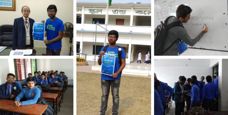 Volunteers visited various schools and given presentations to convey the importance and prospect of this competition. Mainly, Schools and colleges are from Dhaka, Chittagong, Sylhet, Bogura, Rangpur & Bhola.